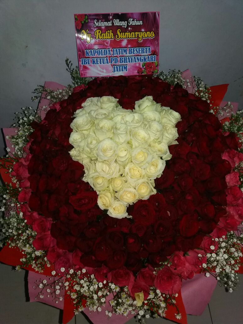 • Bunga papan dengan 5 titik bunga kombinasi pita hati : Rp 1.100.000